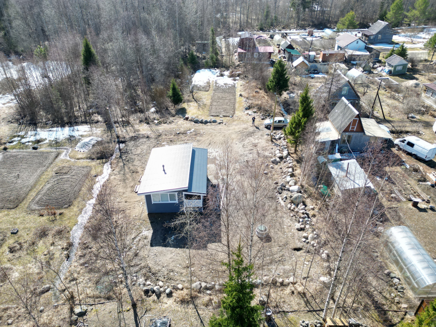 Поставите теплицу, баню, мангал и клумбу для души - вот и отпуск, а где праздновать новый год (круглогодичный подъезд) вопрос решенный.